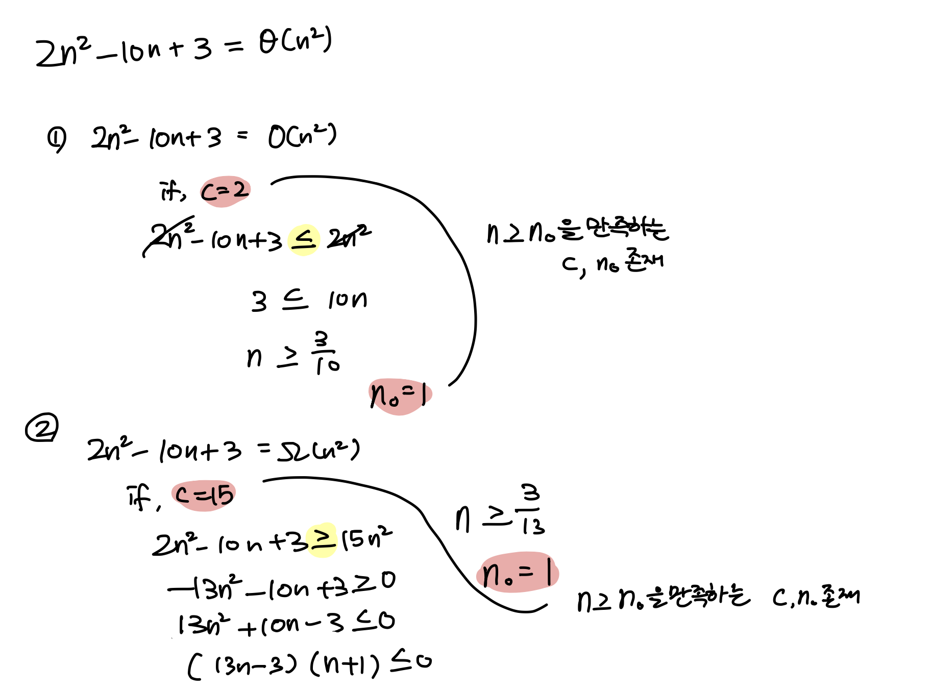 Q8. f(n)=2n^2-10n+3이 Θ(n^2)임을 증명하시오.