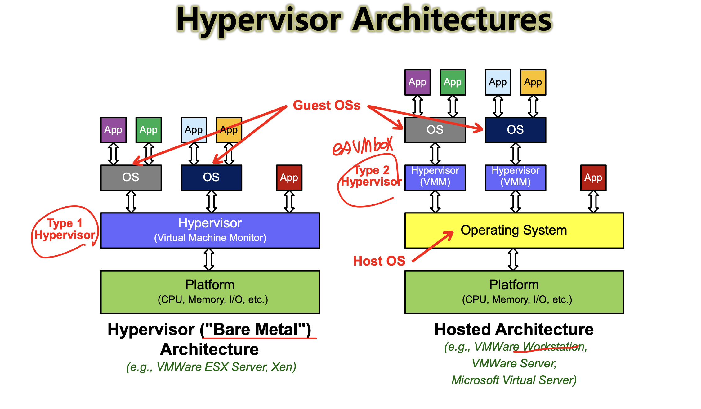 하이퍼바이저는 Guest OS를 위한 일종의 가짜 하드웨어이다. 이는 크게 두가지 방식으로 나뉜다.