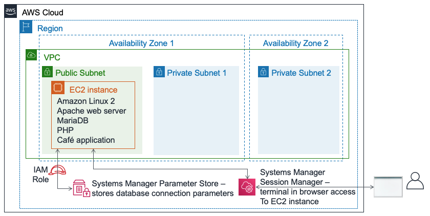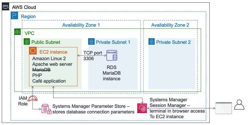 - Migrate data from a MariaDB database that runs on an EC2 instance to an RDS database instance