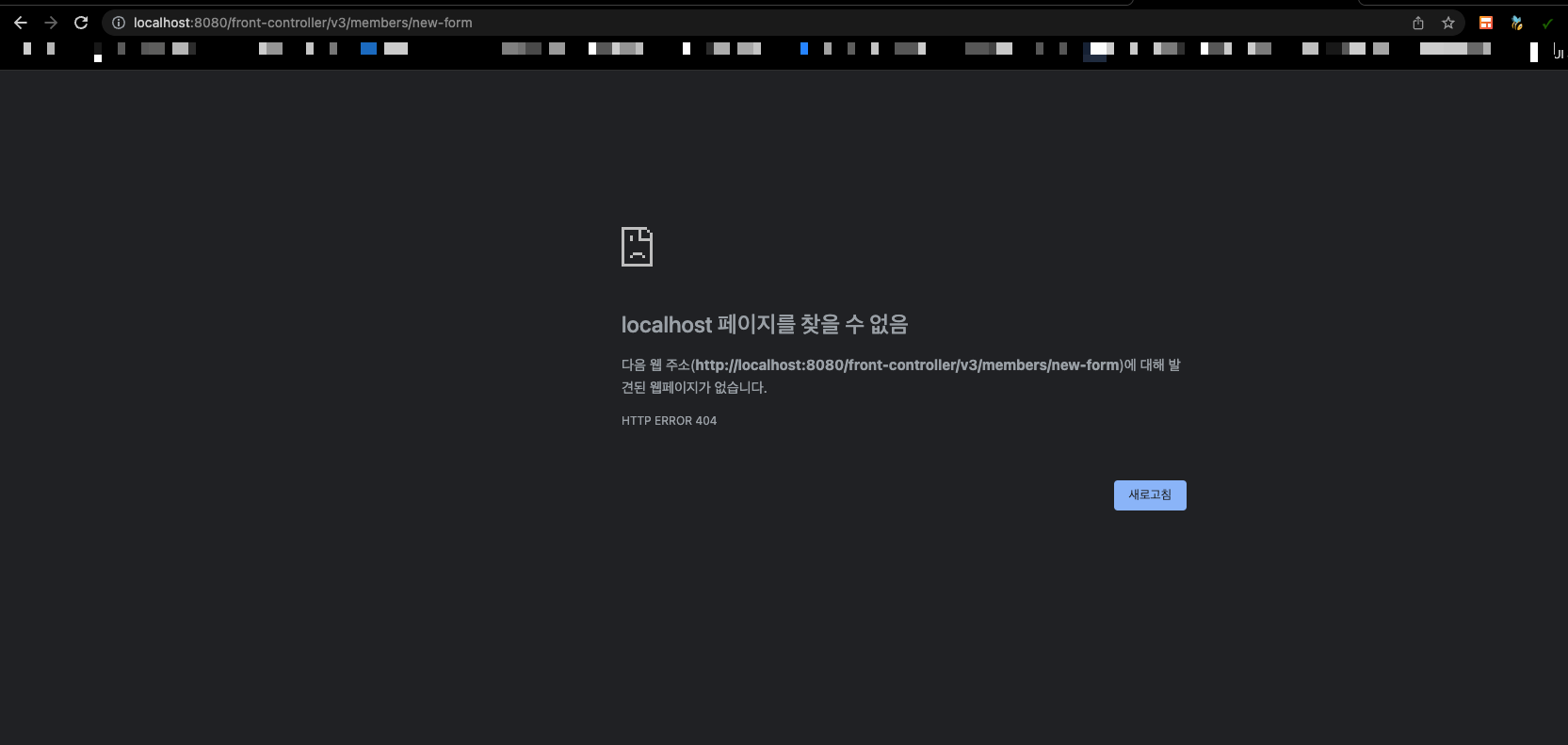 두번째로, 오류 메세지를 읽었을때 'frontControllerServletV3'에 문제가 있다는 생각이 들어, 해당 자바파일을 아예 삭제 / 강사님의 코드에서 ctrl C V 이렇게 두 개를 모두 시도하였다. 그러나 두가지 시도 모두 여전히 오류를 해결하지 못했다.