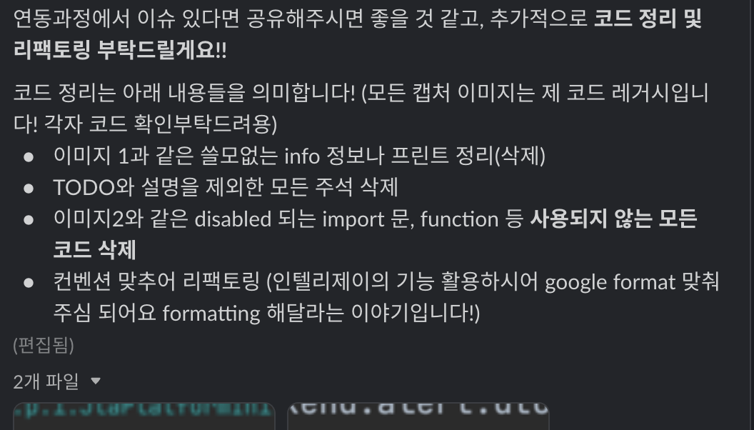 빠르게 상호 피드백을 진행할 수 있도록 슬랙을 적극적으로 활용하였고, 방학 기간에는 일주일에 한번 텐투텐 시간을 가져 빠르게 프로젝트를 진행할 수 있도록 노력하였다.