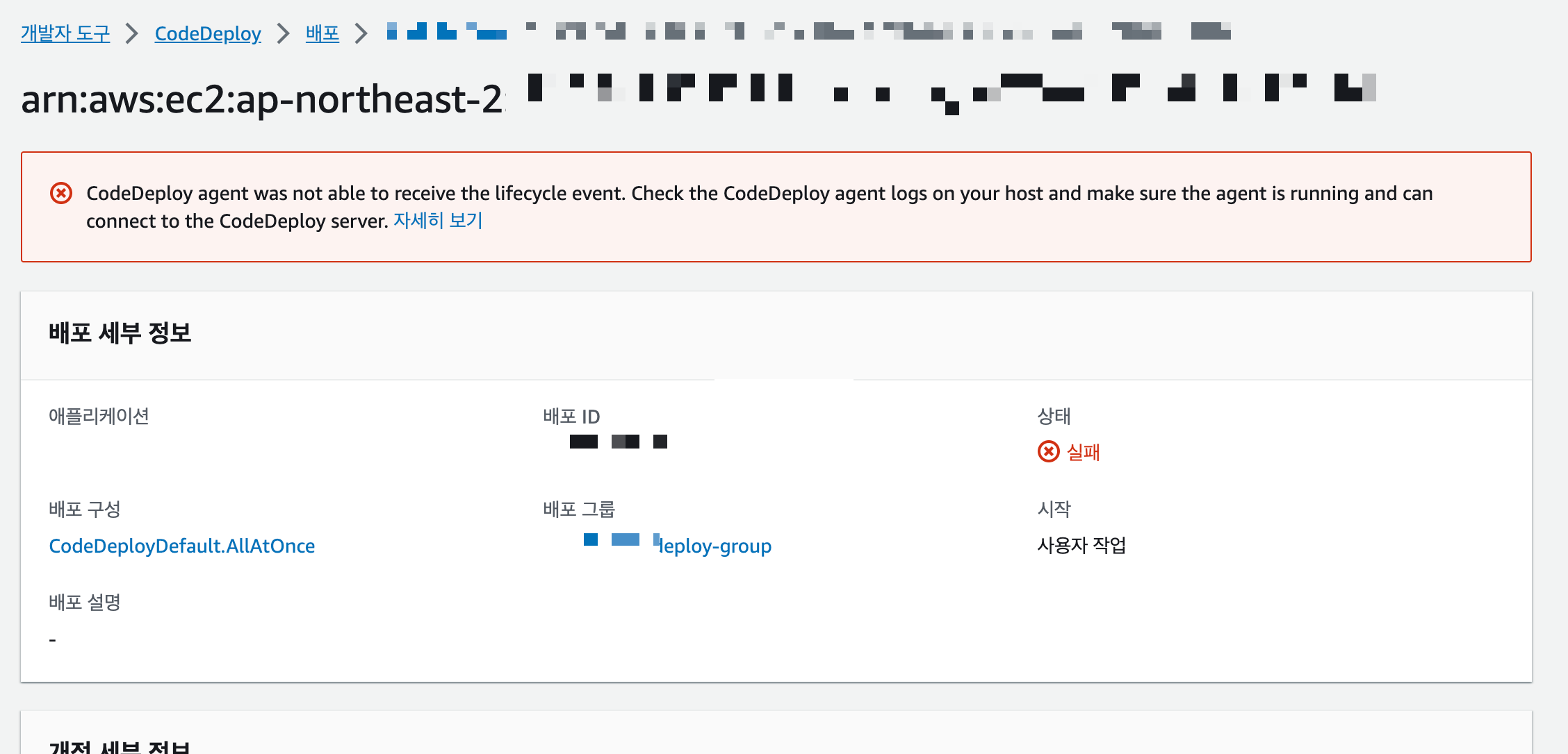 여러 블로그를 보았을때 가장 많이 보이는 글이 ec2 내 codedeploy-agent 미설치였으나, 내 경우는 아니었다.
