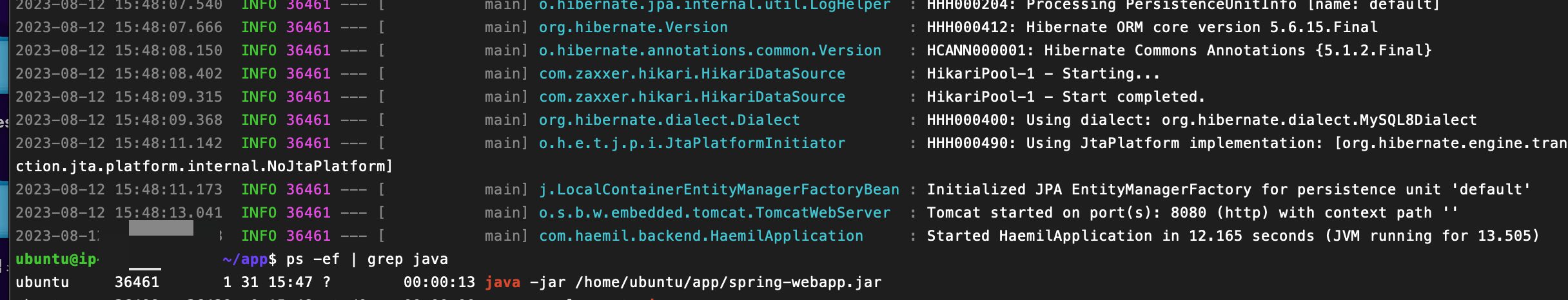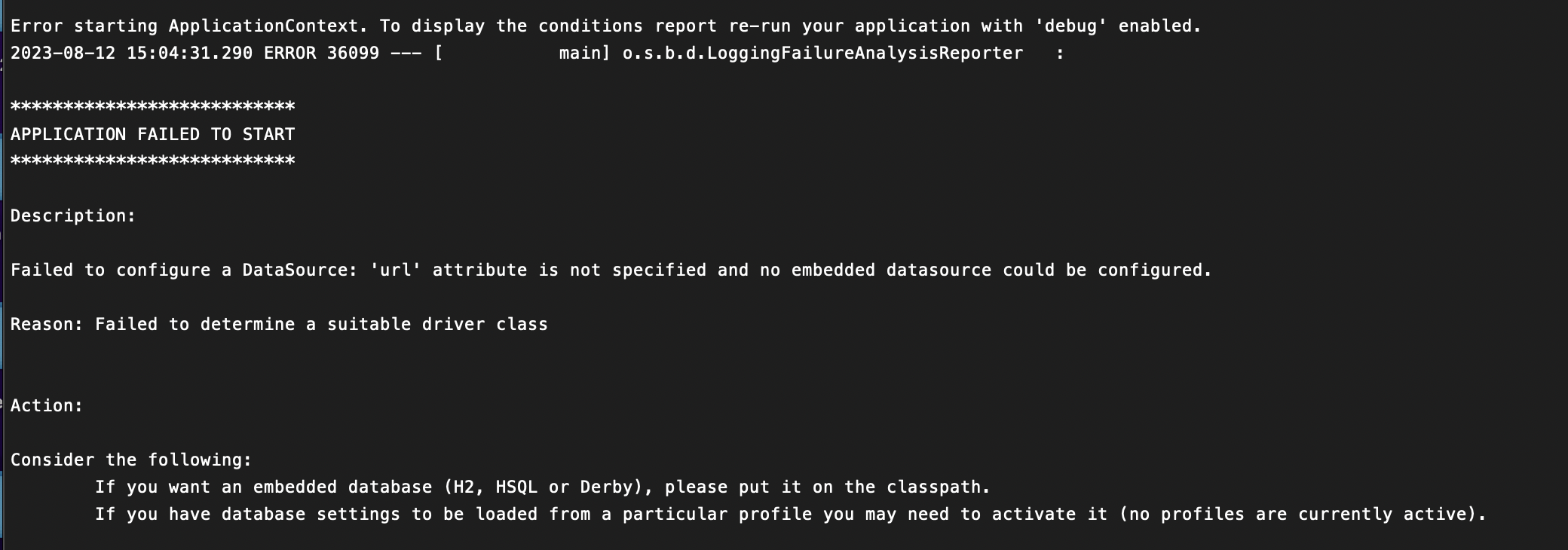 바로 /app에 가서 cat application.log 으로 로그를 확인해보았다. 또 spring이 에러를 뿜었다.