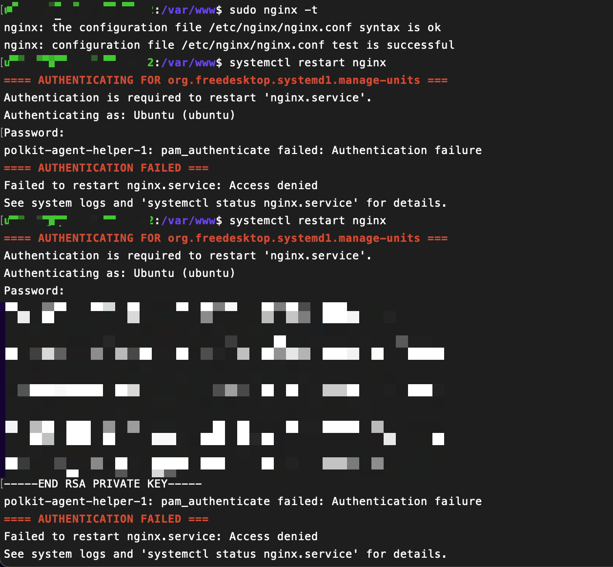 nginx 재시작을 할 떄 계속 권한 문제가 발생하였다.